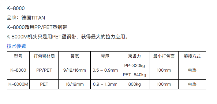 德国TITAN塑钢带打包机头K-8000/M