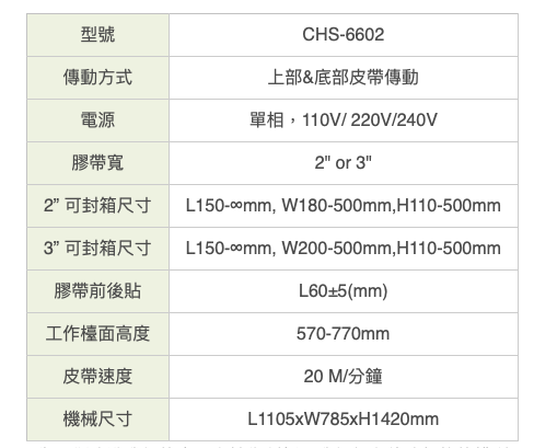 CHUENAN上部底部皮带传动封箱机CHS-6602皮带