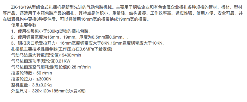 组合式气动钢带打包机ZK-16/19A