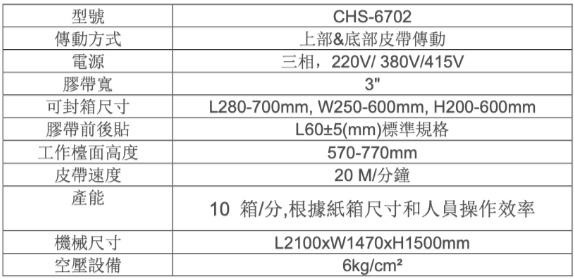 CHUENAN单一纸箱角边密封封箱机CHS-6702皮带
